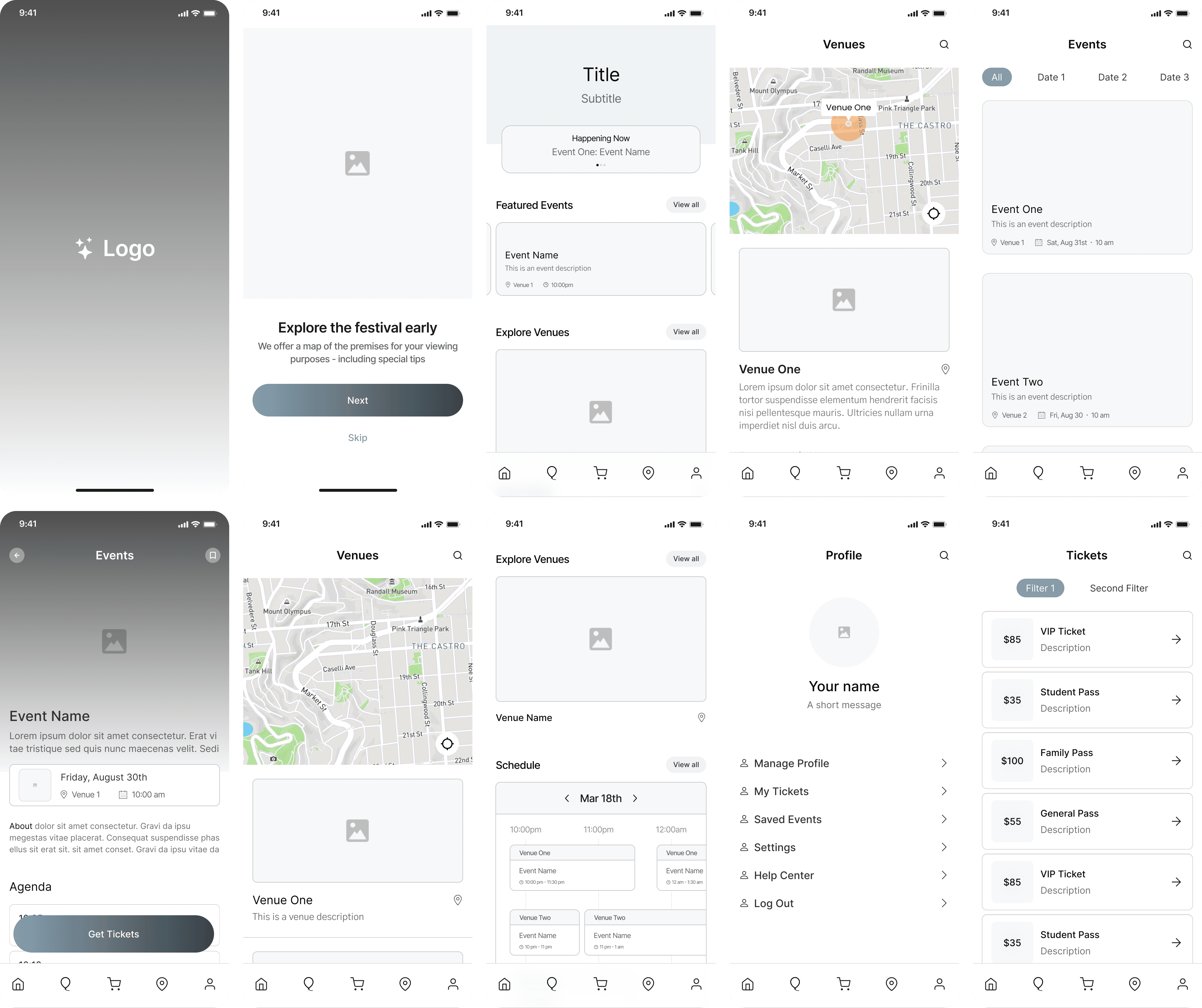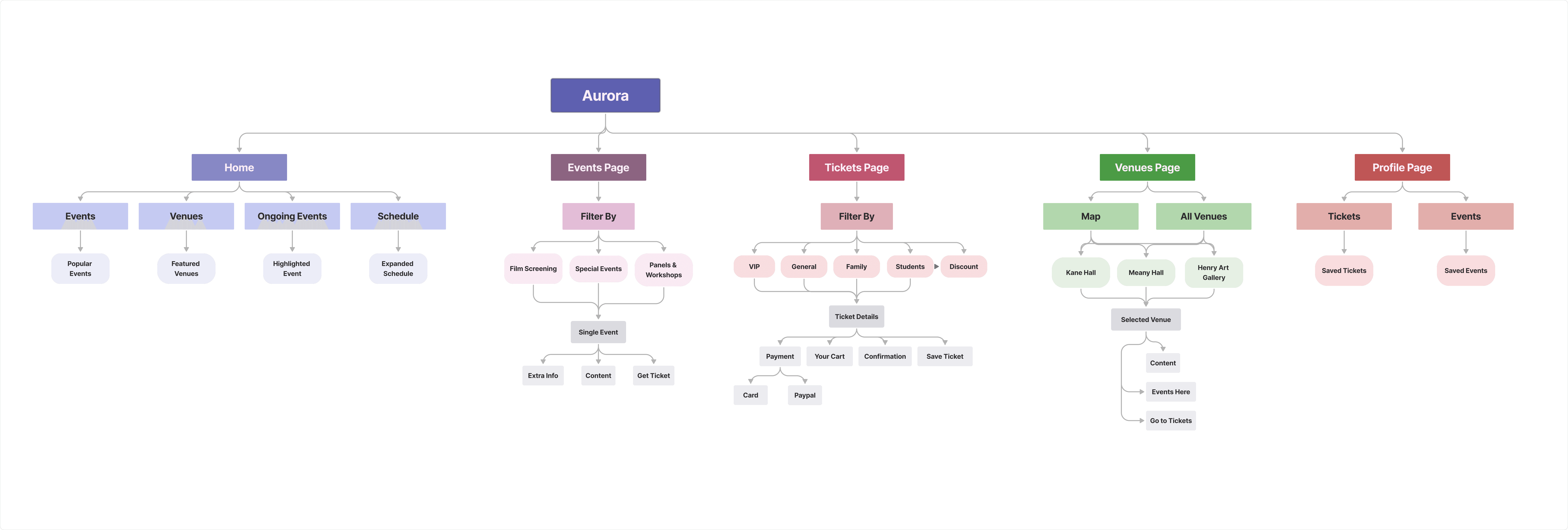 Aurora is a mobile app designed for a fictional film festival that celebrates and uplifts women in the film industry. Conceptualized as part of a 10-week project, the app provides attendees with easy access to festival information, ticketing, event schedules, and venue navigation, supporting both pre-festival planning and real-time use during the event.