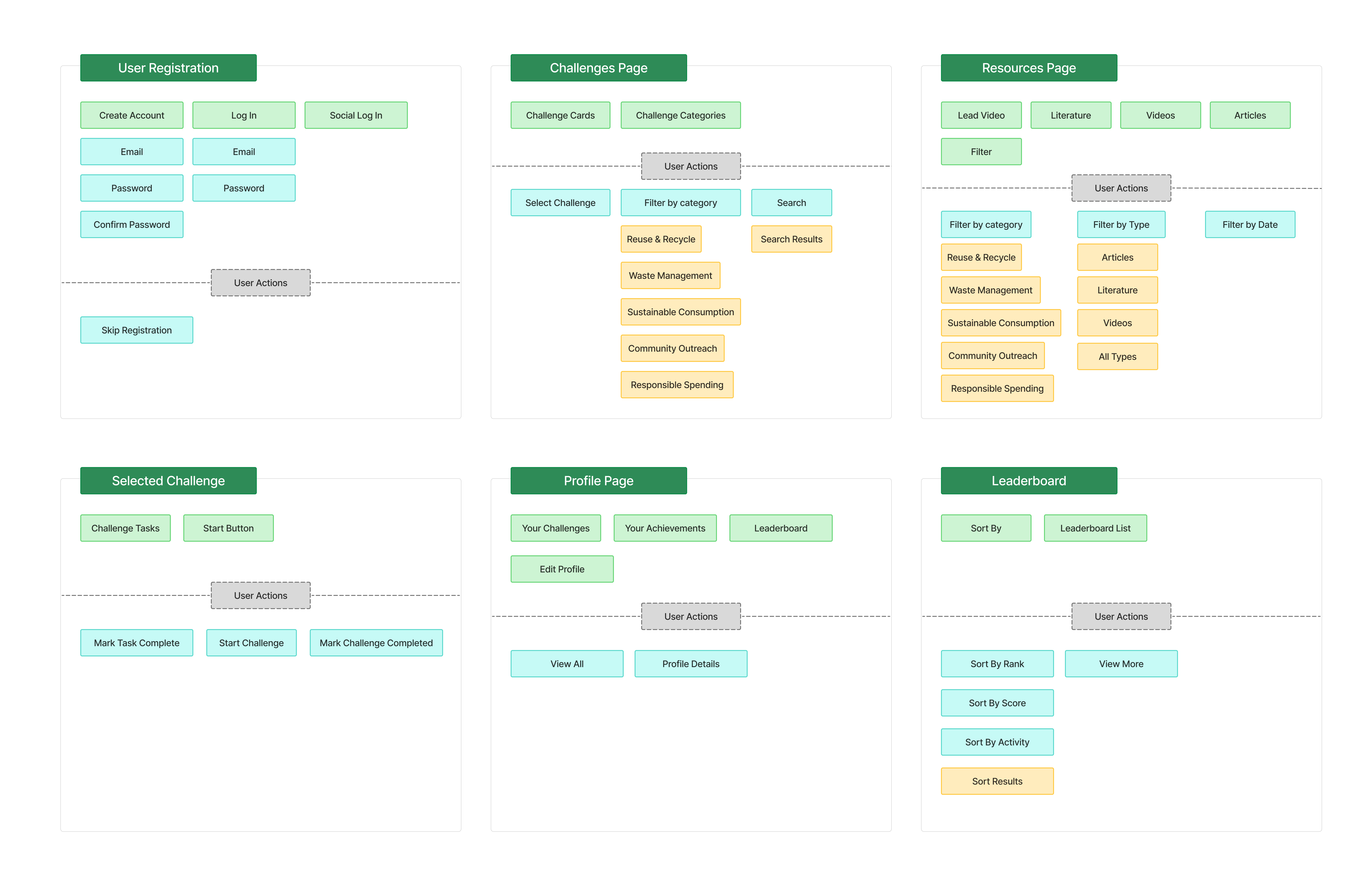 Eco-Challenge’s goal is to inspire and empower individuals to live sustainably. To reflect this, we used a cool, vibrant, and refreshing color palette paired with a clean sans-serif font to create a sense of motivation and encouragement.