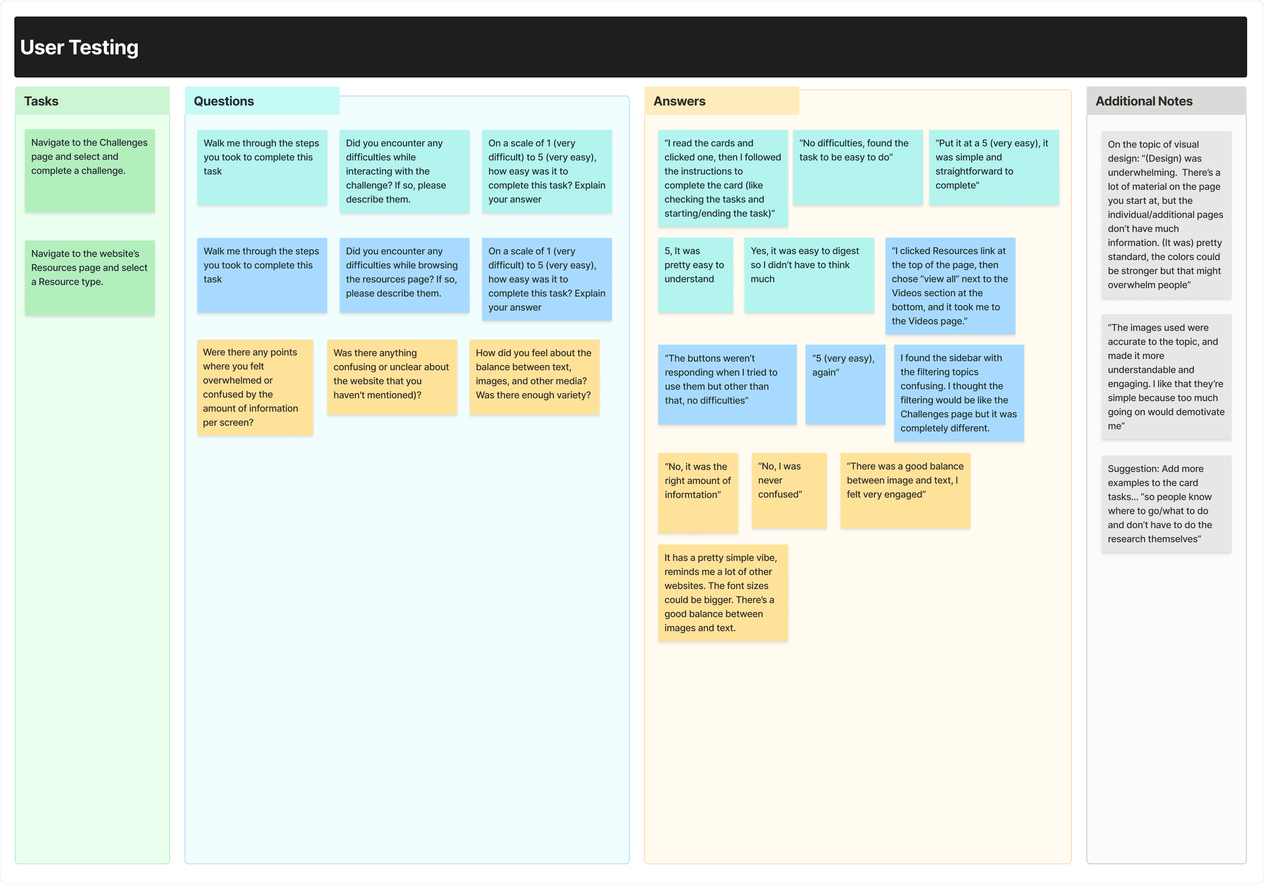 The feedback revealed issues with content clarity. Some pages lacked content, while others had too much. Additionally, the website’s instructions left users confused and uncertain about how to approach challenges.
