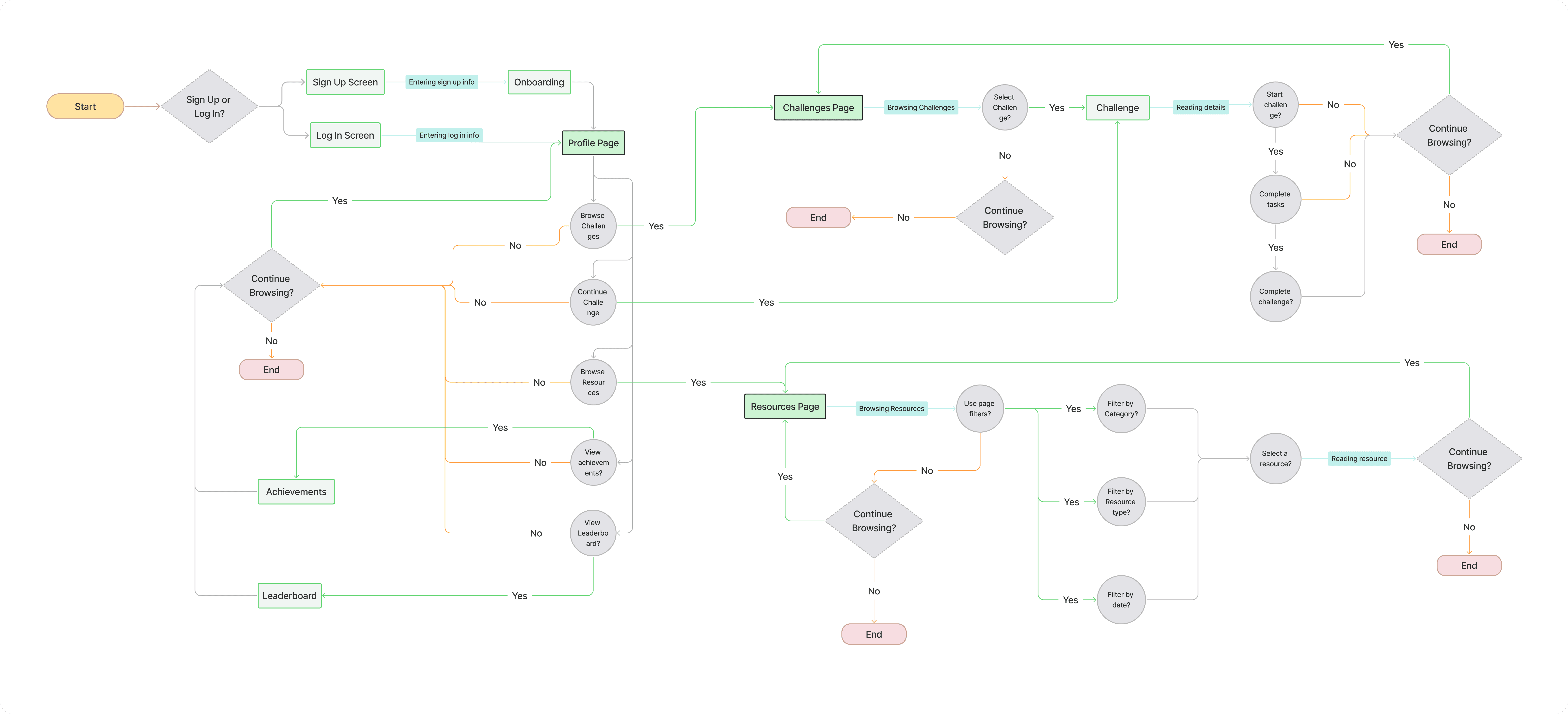 The user flow helped us visualize how users would move through the website. Together with the site map, it informed the structure and layout of the website.