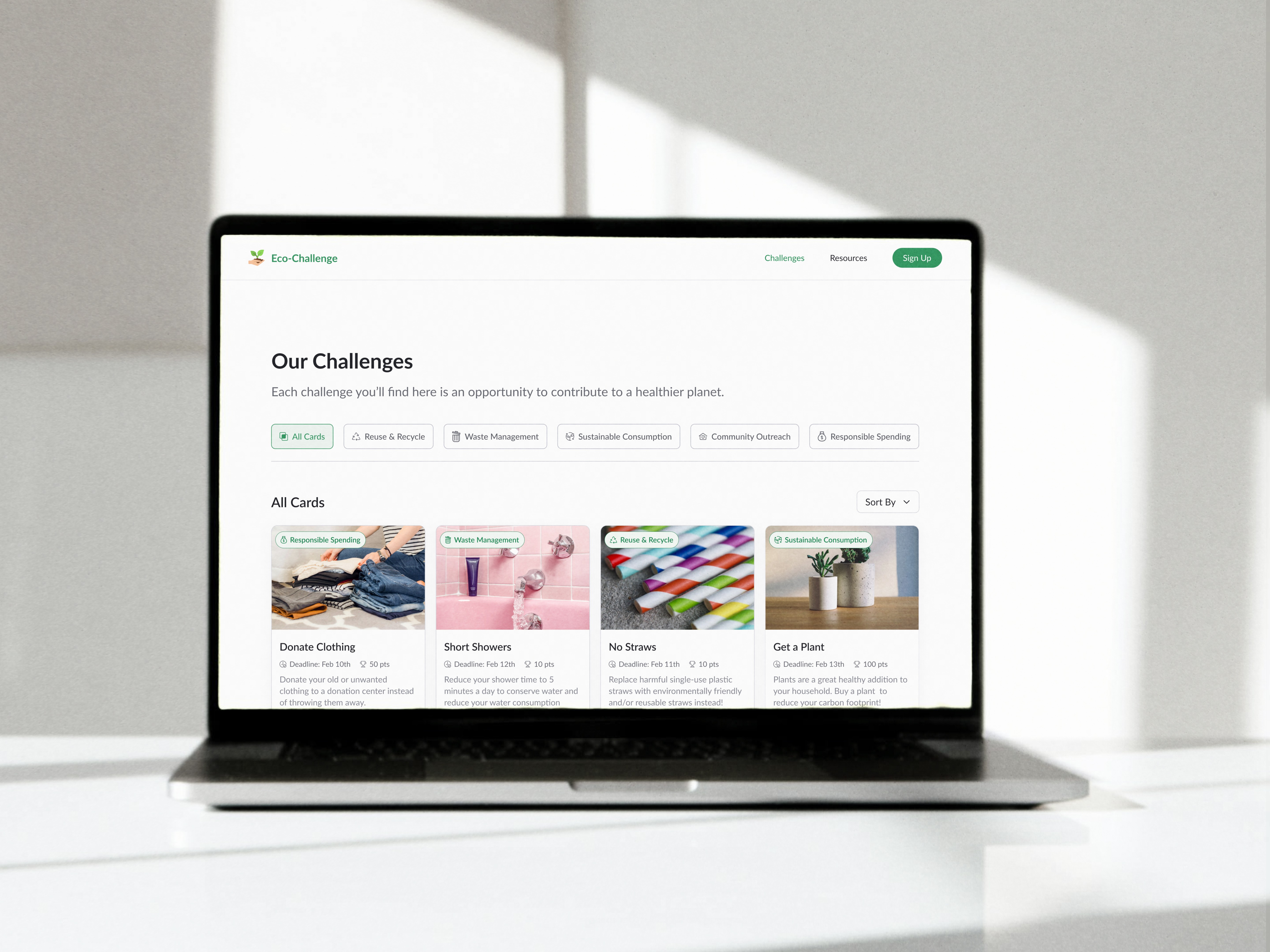 Eco-Challenge is an interactive challenge-based website designed to inspire and empower individuals to live sustainably. It aims to raise awareness about sustainable consumption through eco-friendly challenges and educational resources.
